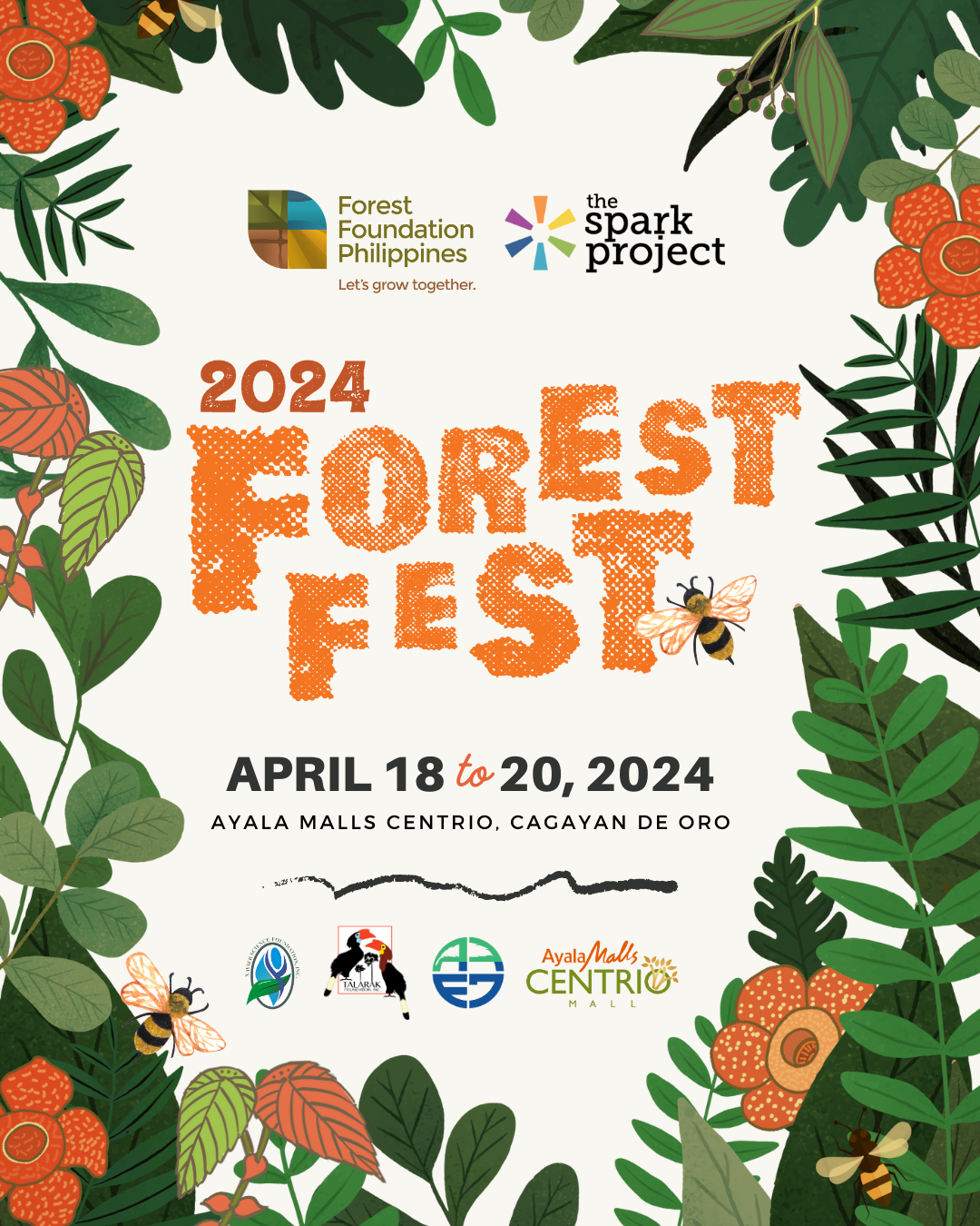 Forest Fest 2024 is a collaborative endeavor between Forest Foundation Philippines and The Spark Project, with the support of Ayala Malls Centrio, Association of Young Environmental Journalists (AYEJ), Talarak Foundation Inc., and Xavier Science Foundation.